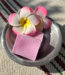 Ervaar de zoete geur van het roze Frangipani amberblokje. Gemaakt van natuurlijke materialen met ton..