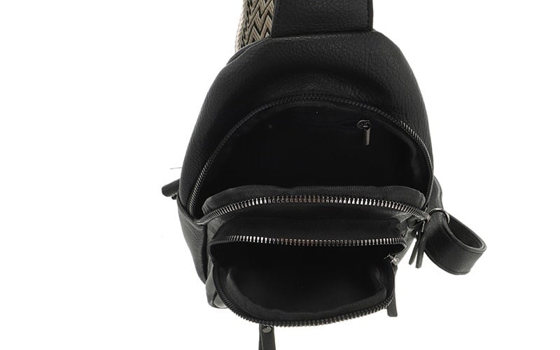 De tas is gemaakt van veganistisch leer (PU materiaal) en heeft meerdere afsluitbare vakken, zodat je je spullen veilig en overzichtelijk kunt opbergen. Van je telefoon tot je portemonnee: alles heeft zijn eigen plek.