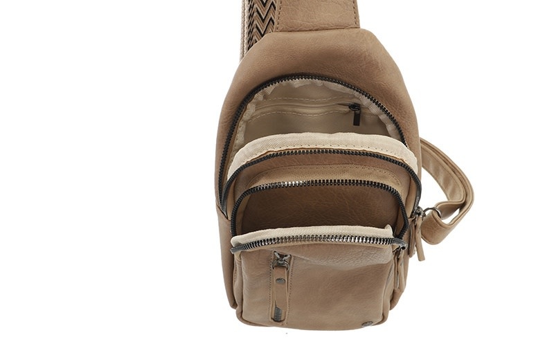 De tas is gemaakt van veganistisch leer (PU materiaal) en heeft meerdere afsluitbare vakken, zodat je je spullen veilig en overzichtelijk kunt opbergen. Van je telefoon tot je portemonnee: alles heeft zijn eigen plek.