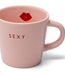 Vondels espresso kopje SEXY in roze met rode tekst en lippenprint. Stoer en speels design voor een s..