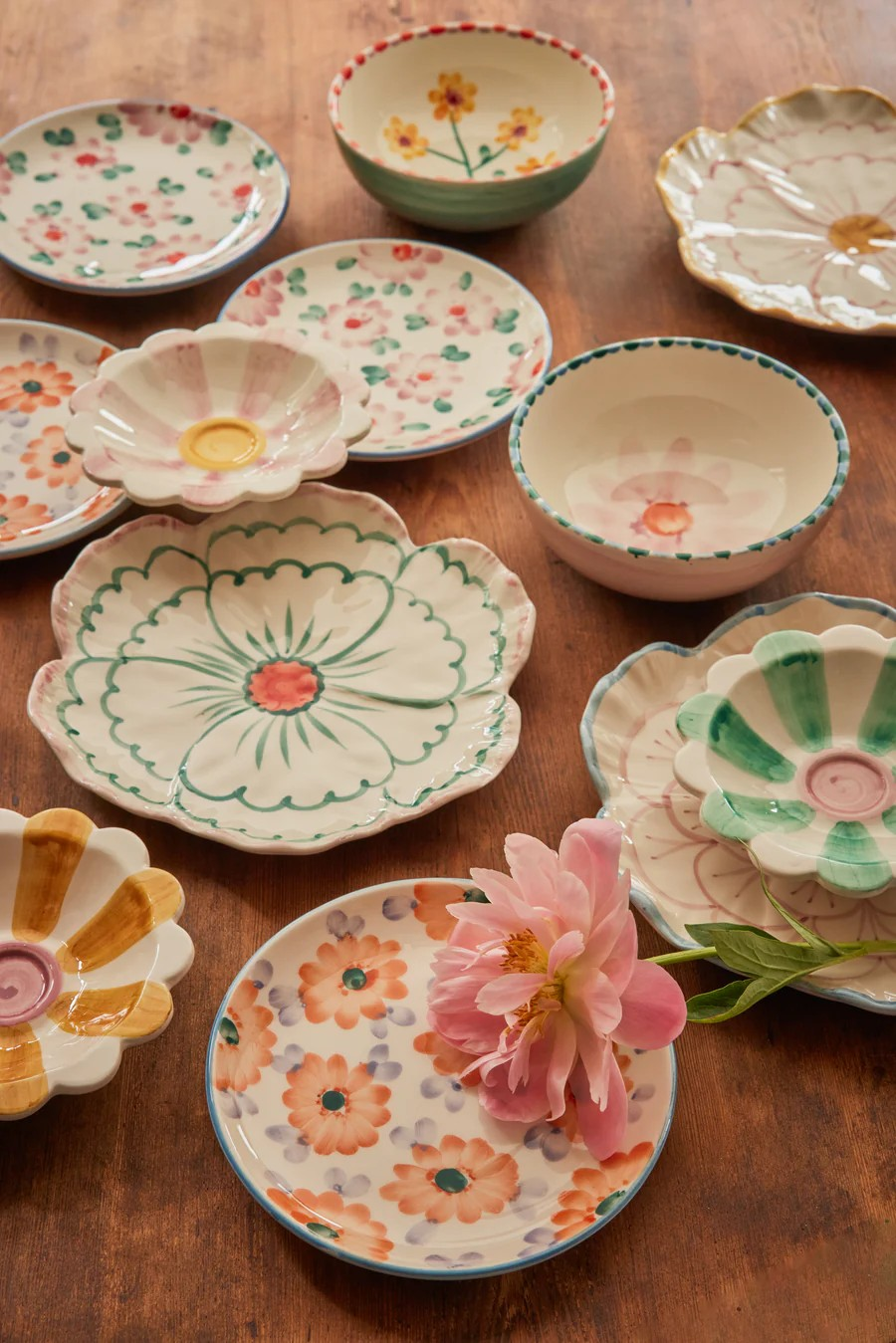✔ Gebloemd ontwerp – Zachte groene en roze tinten voor een frisse tafelsetting