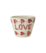 Begin je dag met een glimlach dankzij dit schattige, ovale espressokopje van RICE. Met liefde handgeschilderd door Portugese vrouwen, en versierd met hartjes en het woord "love" in het midden – elk kopje is uniek! Perfect voor een espresso of een gembershotje.