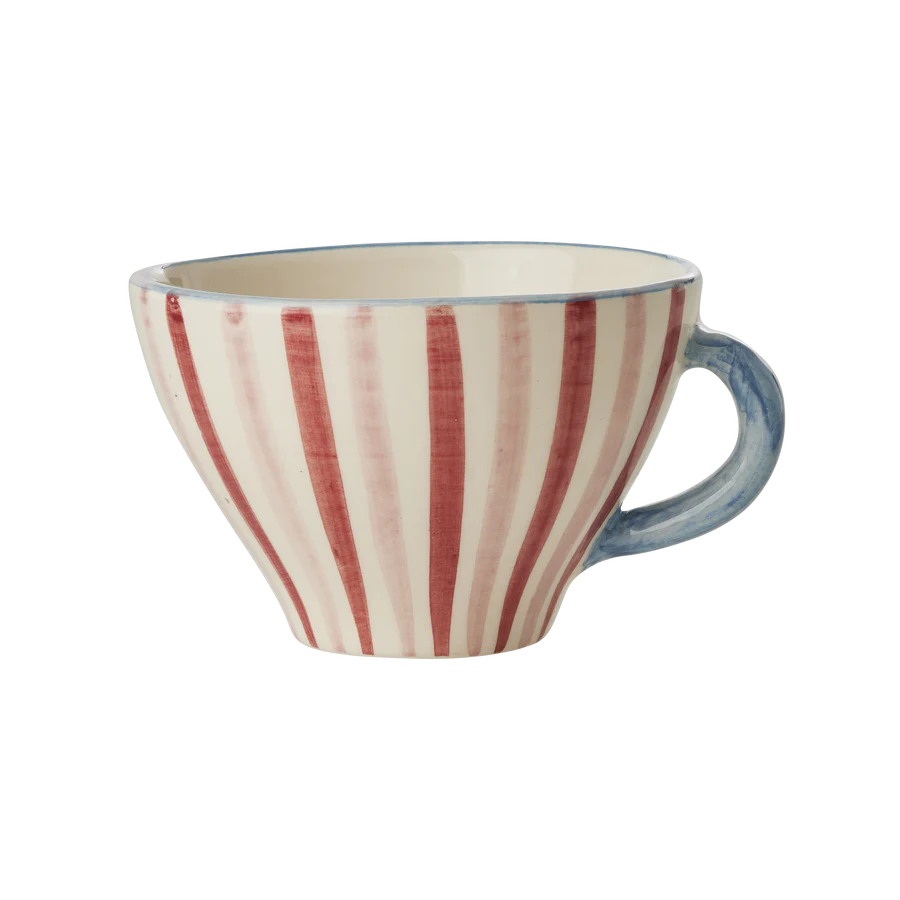 Ceramic tea cup with hand painted stripes