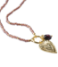 Deze ketting van A Beautiful Story is geregen met goudkleurige en roodtint glaskralen, en afgewerkt met een vintage hartbedel en een ovale granaat edelsteen. Lees meer..