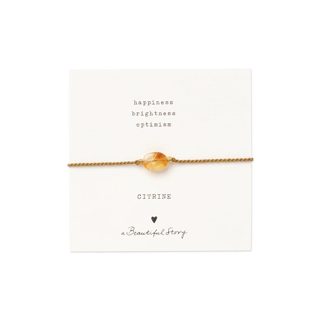 De Edelsteenkaart Citrien armband van A Beautiful Story is een handgemaakte armband van katoendraad met een citrien edelsteen. Het schuifslot maakt de armband verstelbaar, zodat hij altijd comfortabel past. Citrien staat voor helderheid, vrolijkheid en optimisme – perfect om positieve energie te brengen in je dagelijks leven.