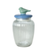 Praktische en mooie, glazen pot van Rice. Met groen vogeltje op de blauwe deksel. Ideaal voor het bewaren van bijvoorbeeld snoepjes of muesli. Lees meer..