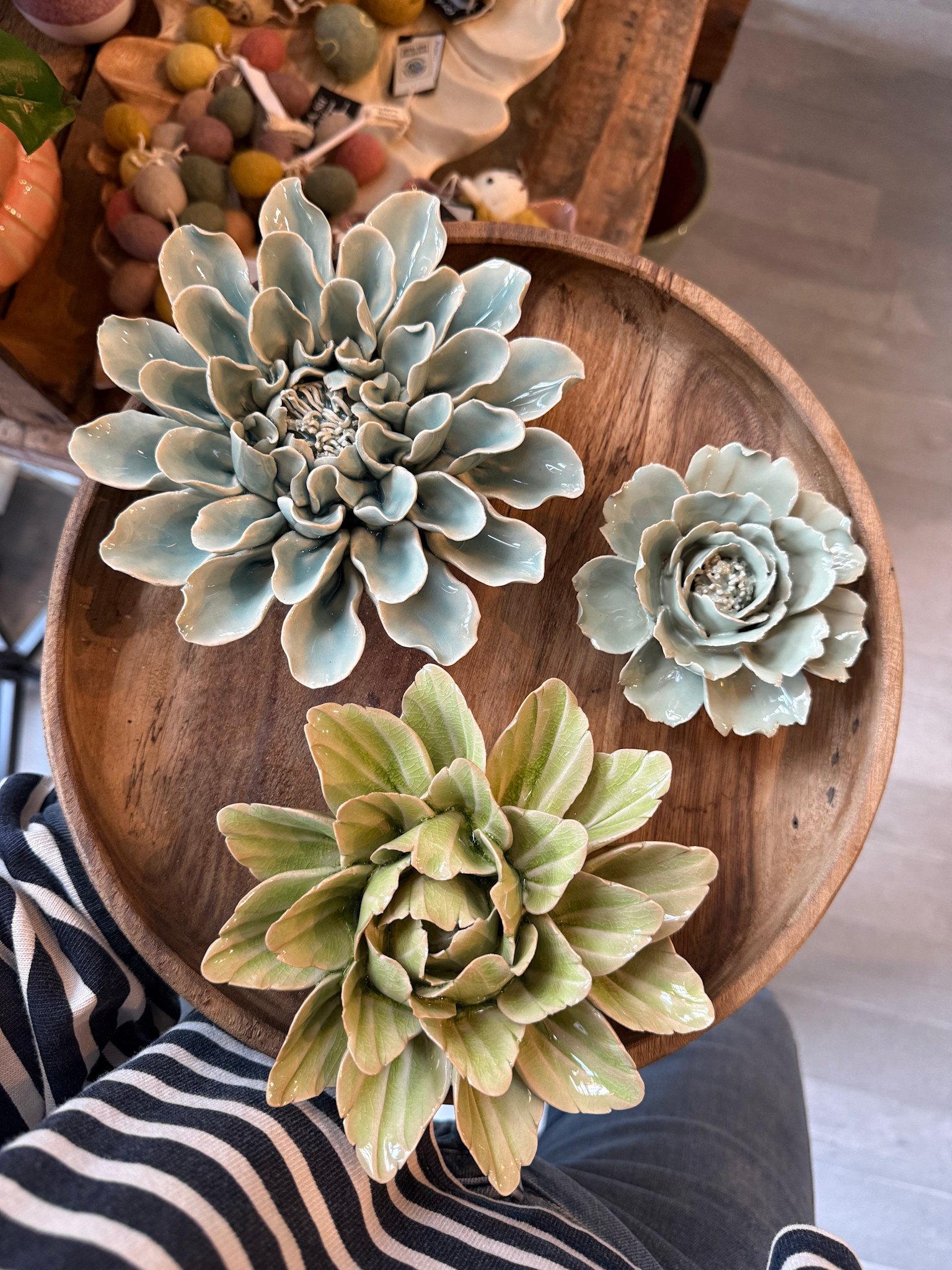 Houten schaal & bloemen keramiek compleet