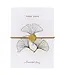 Deze betekenisvolle kaart met Ginkgo blad illustratie en handgemaakte envelop bevat een armband met vergulde messing munt. Dit staat symbool voor het leven. Lees meer..