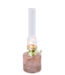 De Elvira Kerosine Lamp van Strömshaga is een elegante sfeermaker met een slank silhouet van geribbeld glas in een verfijnde asroze tint. De messing brander geeft de lamp een klassieke touch, terwijl het gerecyclede glas bijdraagt aan een duurzamer ontwerp. Perfect als warme lichtbron op donkere avonden of als stijlvol decoratief object. Inclusief lont.