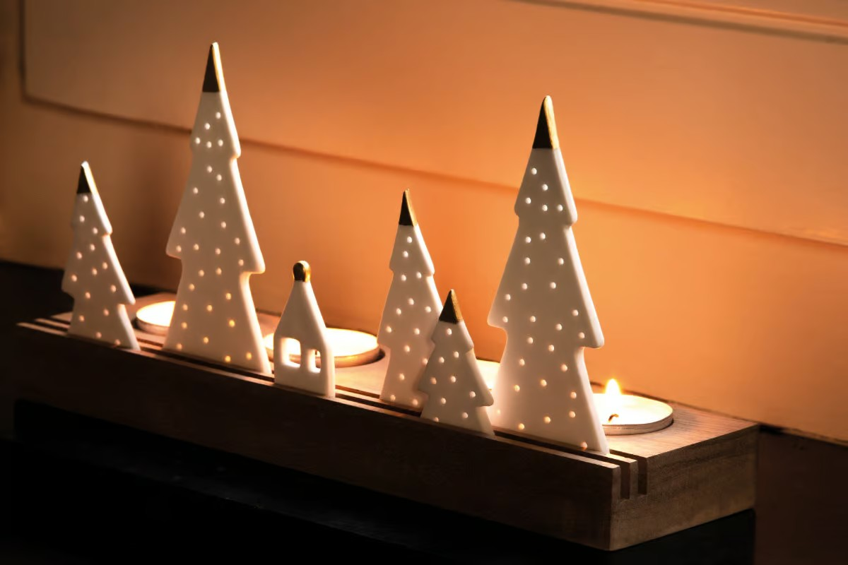 ✔ Warme winterse sfeer – Porseleinen boompjes geven een zacht, sprookjesachtig licht