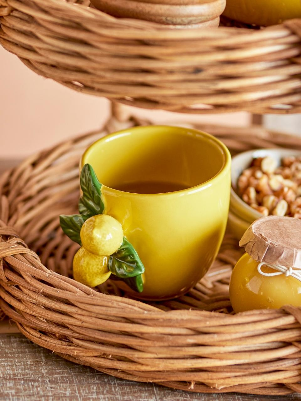 De Limone Cup van Creative Collection is een zonnige toevoeging aan je serviescollectie. Met de hand gedecoreerd en versierd met vrolijke citroenen, brengt deze warmgele beker direct een mediterrane sfeer op tafel. Perfect voor een grote kop thee of je favoriete koffie.