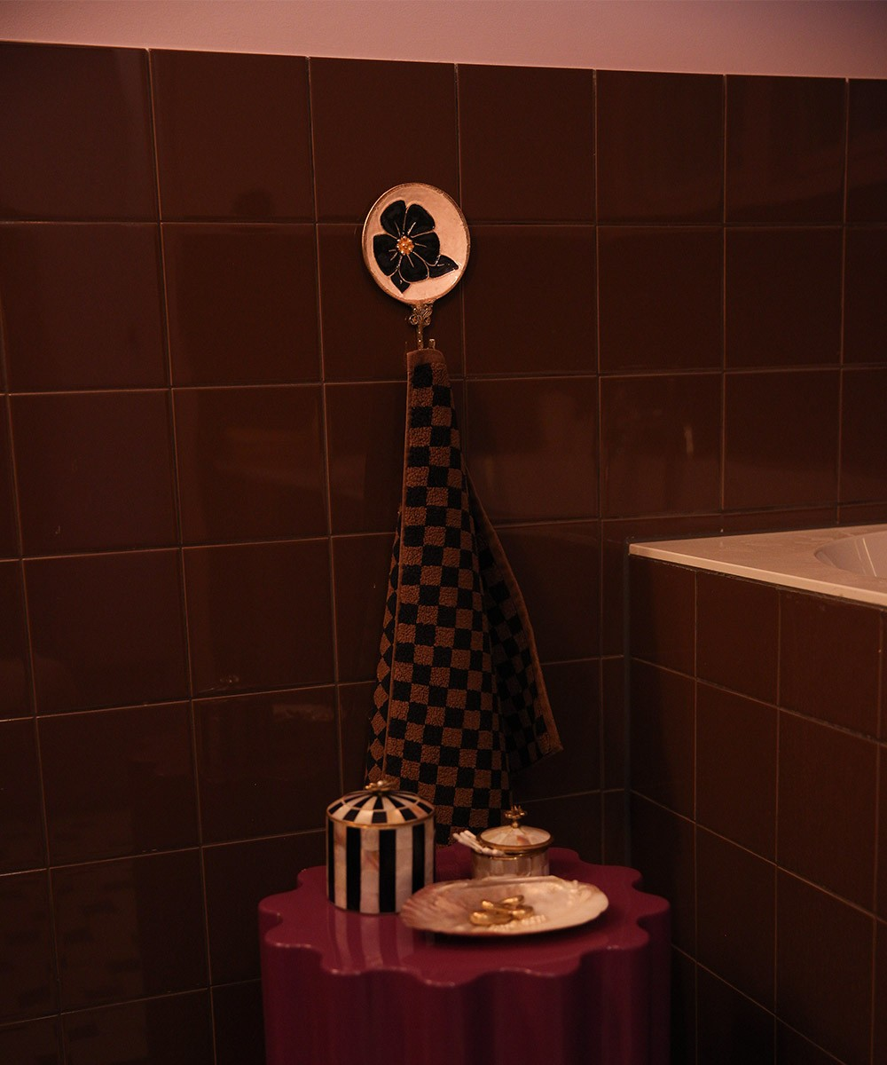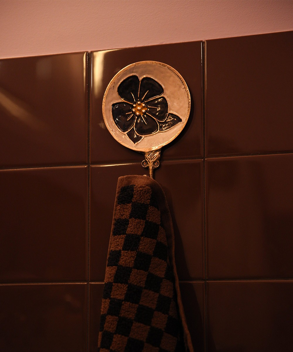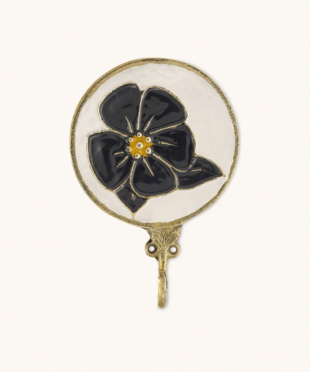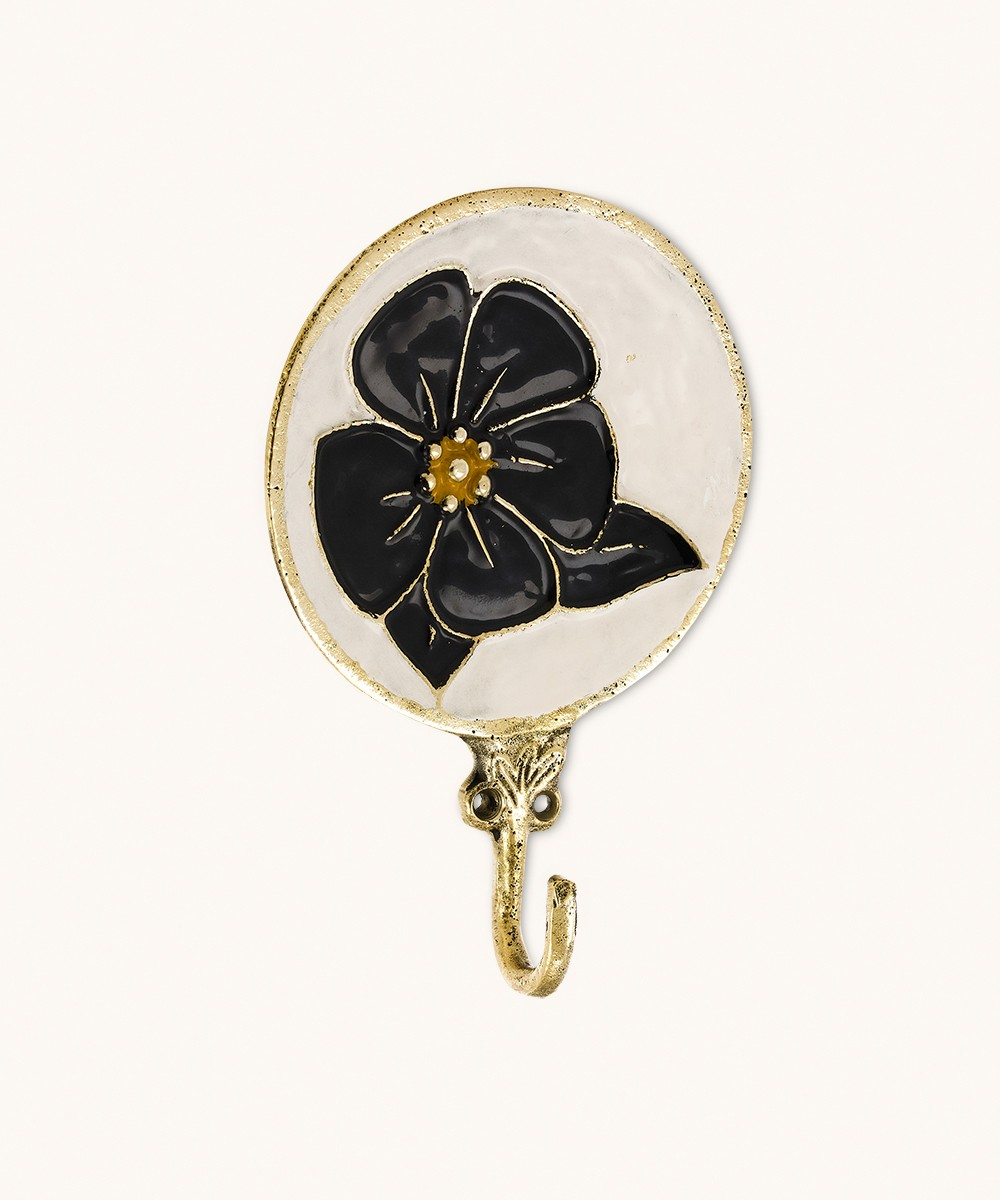 Geef je muur een speelse vintage twist met de Lina Bloem Haak. De opvallende zwarte bloem op een gouden basis maakt van deze haak een functioneel kunstwerk dat perfect is voor het ophangen van jassen, tassen of accessoires.