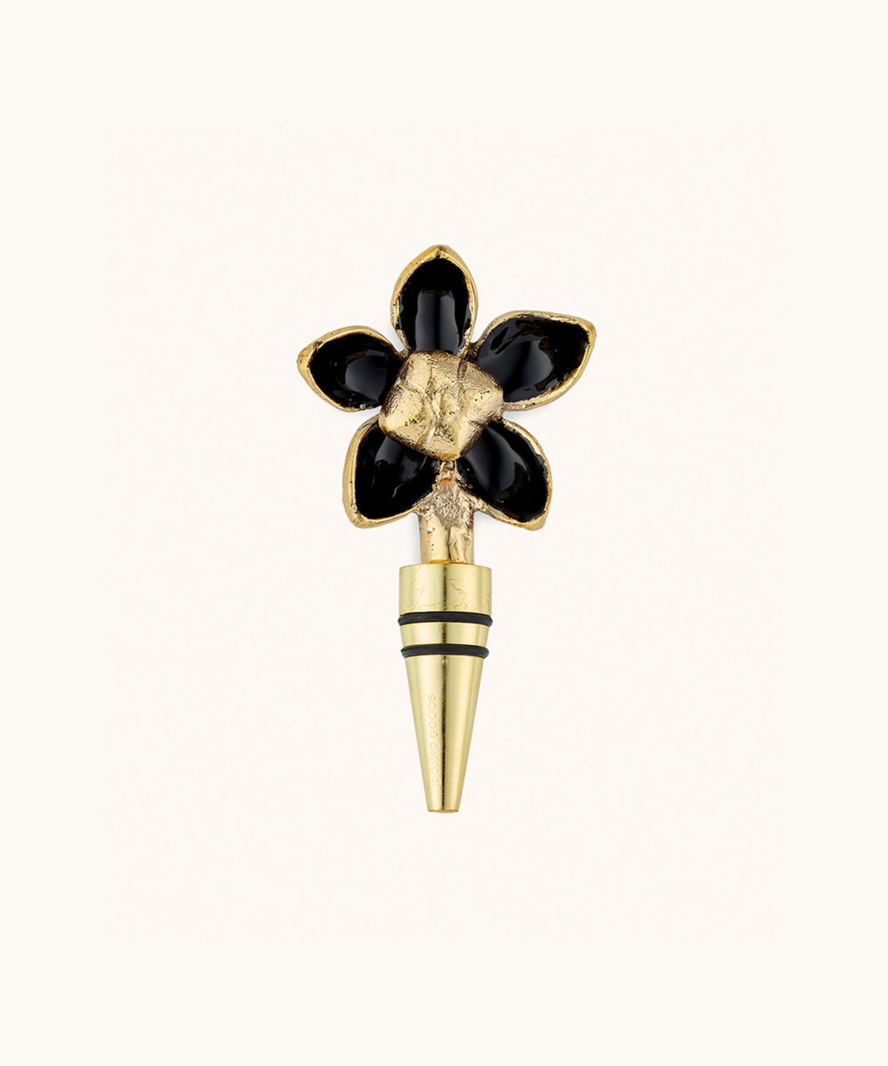De Liv Flower Bottle Stopper van Doing Goods geeft je favoriete fles wijn of sterke drank een stijlvolle finishing touch. Deze prachtige flesstop is handgemaakt van gerecycled messing en roestvrij staal en versierd met een opvallende zwarte bloem. Met zijn elegante ontwerp en praktische functie is het een echte blikvanger op tafel of in de keuken.