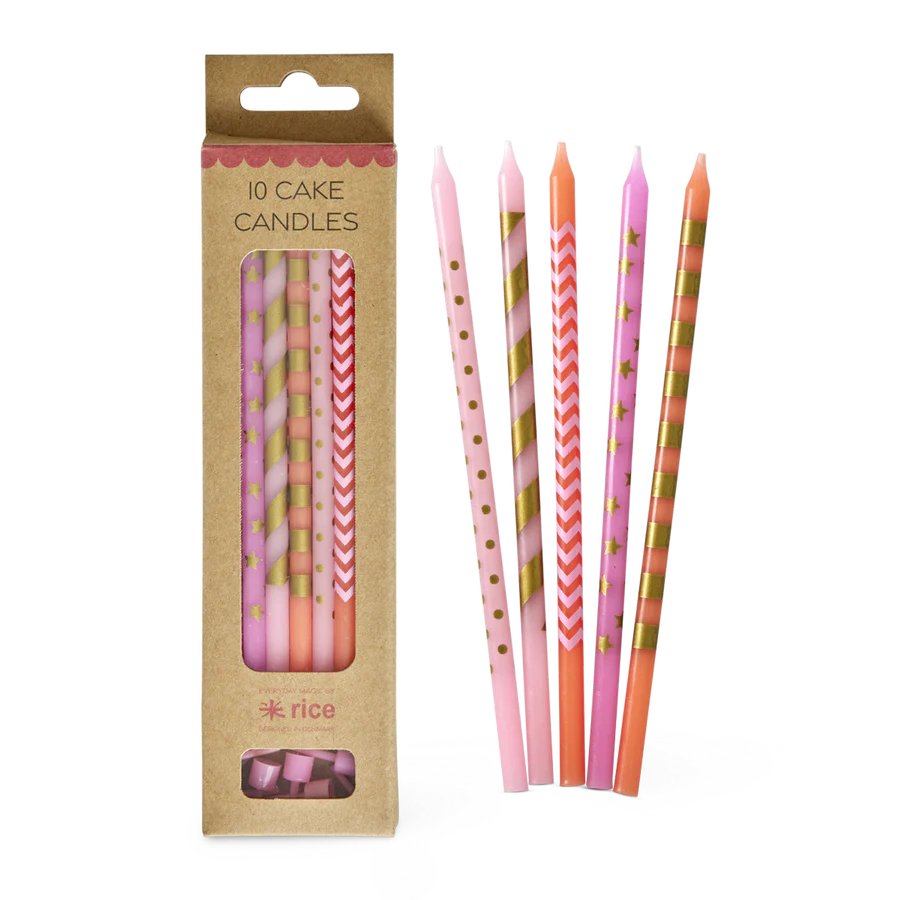 Maak je taart extra feestelijk met RICE taartkaarsjes in roze tinten, versierd met sterren, strepen ..