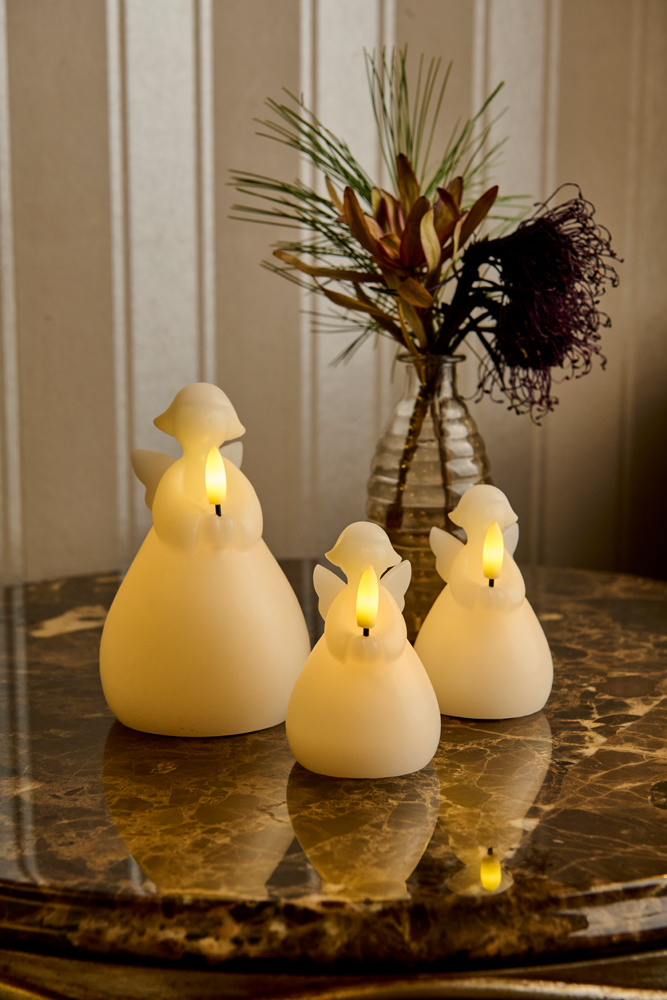De Lucia Angel van Sirius is een warme en sfeervolle lichtengel die met haar zachte gloeiing direct een gevoel van rust en geborgenheid brengt. Het elegante, ronde silhouet en het subtiele vleugelpaar vormen samen een tijdloos ontwerp dat past in elk interieur. De warmwitte LED-vlam lijkt te dansen als echt kaarslicht, maar dan veilig en energiezuinig.
