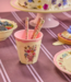 Deze melamine beker van Rice is voorzien van een print ontworpen door Nathalie Lété. De rijke kleu..
