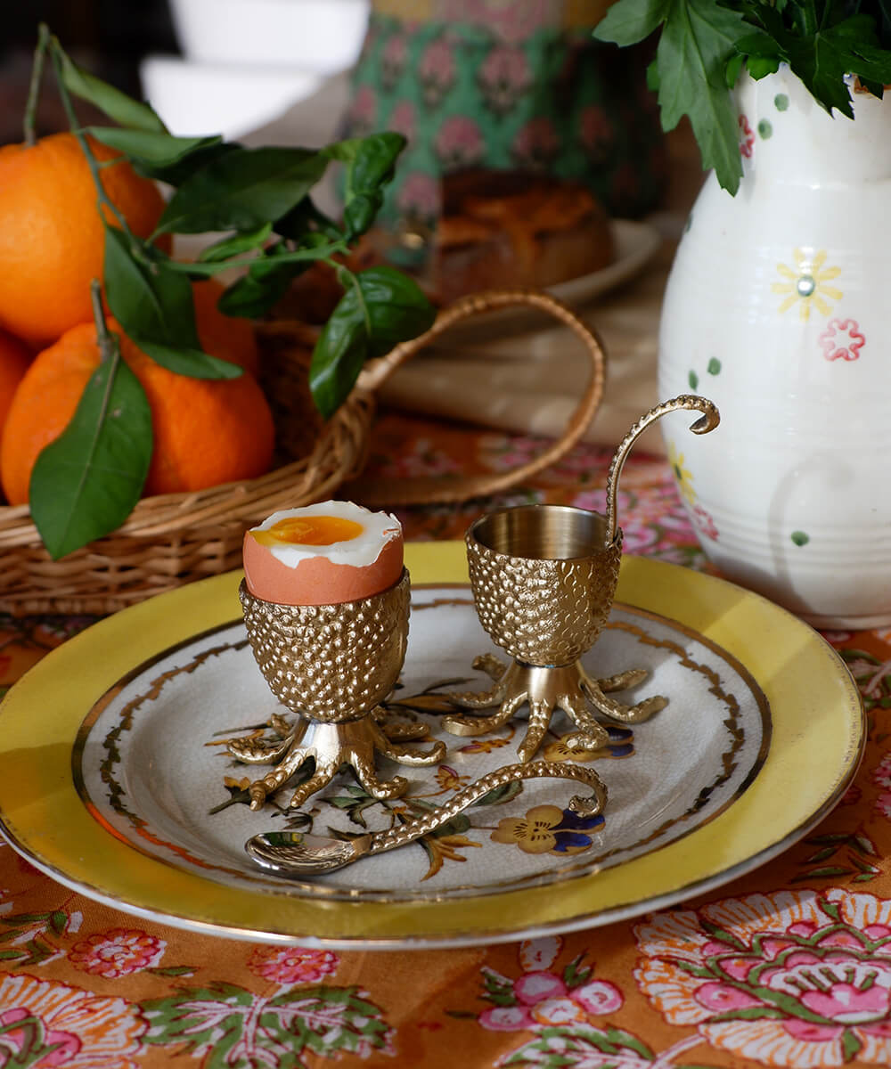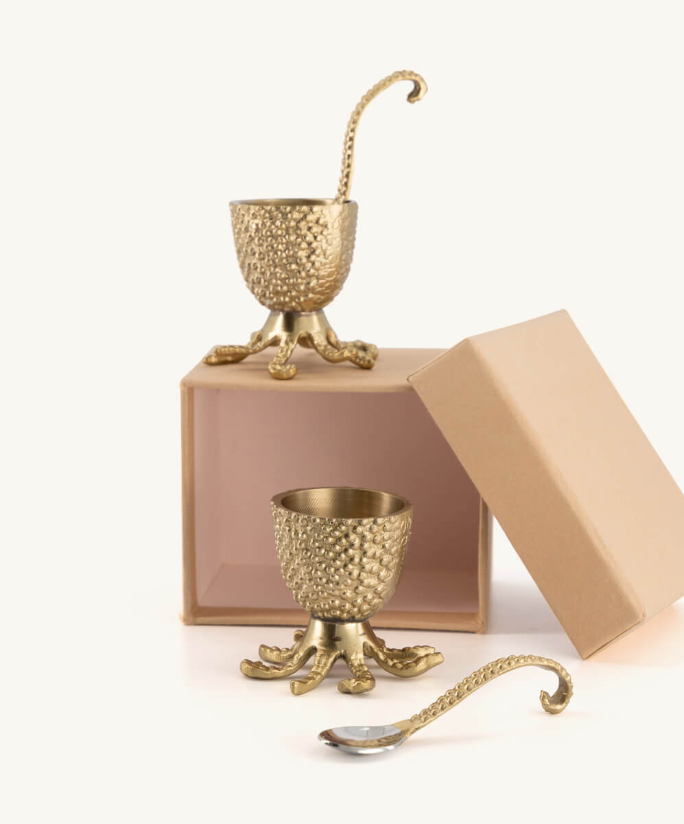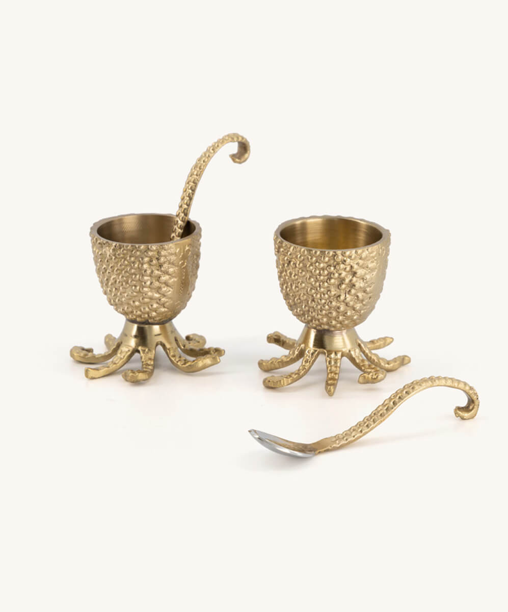 Deze unieke, handgemaakte octopus eierdoppen zijn echte eyecatchers op tafel! Elk stuk is met zorg vervaardigd in India van 100% gerecycled messing. Door het ambachtelijke proces zijn lichte variaties in de uitstraling mogelijk, wat elk item uniek maakt.