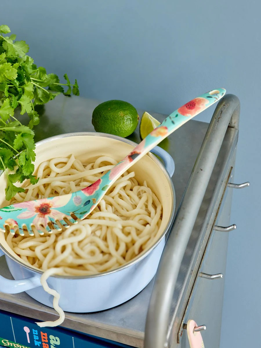 Melamine is een duurzaam materiaal en ideaal voor dagelijks gebruik, omdat het sterk en makkelijk schoon te maken is. Het absorbeert geen kleur of smaak van voedsel - waardoor de lepel het perfecte keukenhulpje is! Let op: laat de lepel niet in een warme pan zitten tijdens het koken.