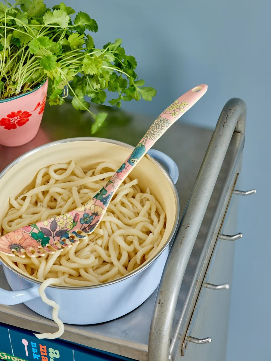 Melamine is een duurzaam materiaal en ideaal voor dagelijks gebruik, omdat het sterk en makkelijk schoon te maken is. Het absorbeert geen kleur of smaak van voedsel - waardoor de lepel het perfecte keukenhulpje is! Let op: laat de lepel niet in een warme pan zitten tijdens het koken.