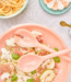 Prachtige, zacht roze kunststof saladebestek. Het patroon is met de hand gegoten, dus je zult nooit twee identieke setjes vinden, en dat vinden wij juist zo leuk. Lees meer..
