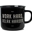 De Retro Mok van JENS Living is de ideale mok voor koffie, thee of warme chocolademelk. Met zijn klassieke emaille-look en stoere zwarte kleur brengt hij een vleugje nostalgie naar je keukenkastje. De mok is gemaakt van keramiek en voorzien van de inspirerende quote: “Work hard, relax harder”. Dankzij het grote oor ligt hij stevig in de hand – perfect voor elk moment van de dag.