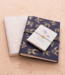 De cover van het boek is gemaakt van katran gerecycled katoen en is versierd met gouden zwaluwen. Het notitieboek sluit met een katoenen wikkelkoord.