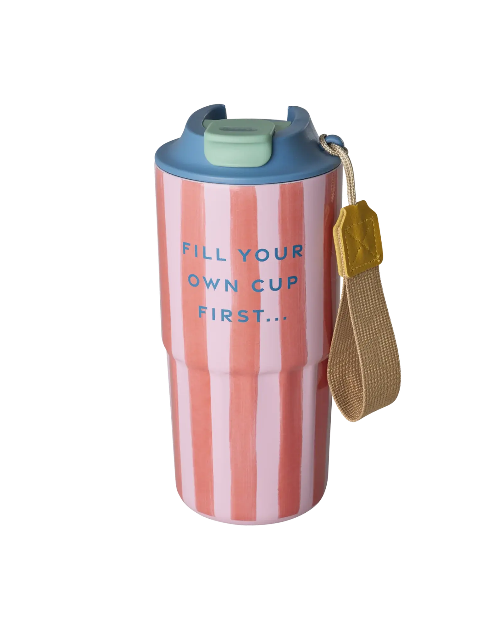 Perfect voor onderweg, op kantoor of tijdens een wandeling. De stijlvolle print in warme aardetinten geeft de beker een natuurlijke uitstraling die past bij elk moment van de dag.
