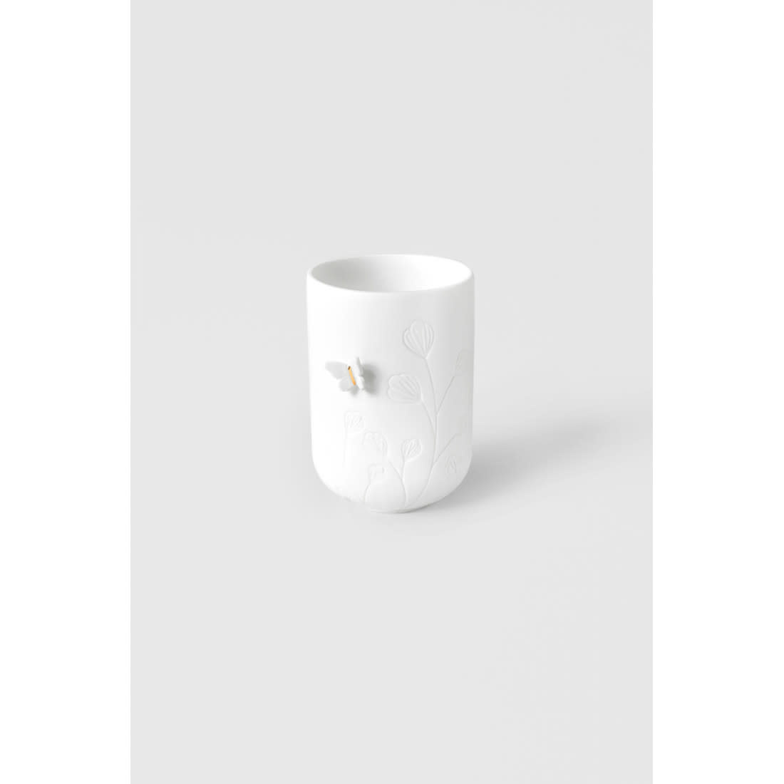 De Butterfly waxinelichthouder van Räder is een verfijnd en veelzijdig porseleinen accessoire. Het windlichtje is voorzien van een elegant bloemenreliëf en een 3D-vlindertje op de rand met een goudkleurig lijfje. De geglazuurde binnenkant maakt het niet alleen geschikt voor een waxinelichtje, maar ook ideaal als klein vaasje. Een uniek item dat sfeer en charme brengt – perfect op zichzelf of gecombineerd met andere Räder-items.