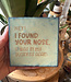 Met deze humoristische tegel van Mevrouw Potjes maak je direct een statement. De tekst “Hey! I found your nose. It was in my business again.” brengt een knipoog en een vleugje sarcasme in je interieur. Het compacte formaat maakt deze keramieken tegel perfect om neer te zetten of cadeau te doen aan iemand met gevoel voor humor.