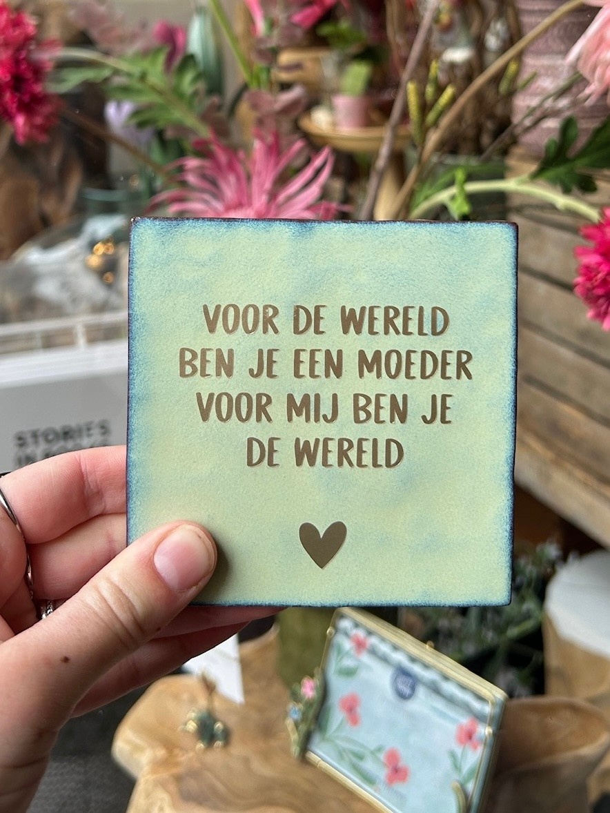 Deze tegel is een liefdevol Moederdag cadeau voor mama en past perfect bij andere bijzondere cadeautjes van Mevrouw Potjes