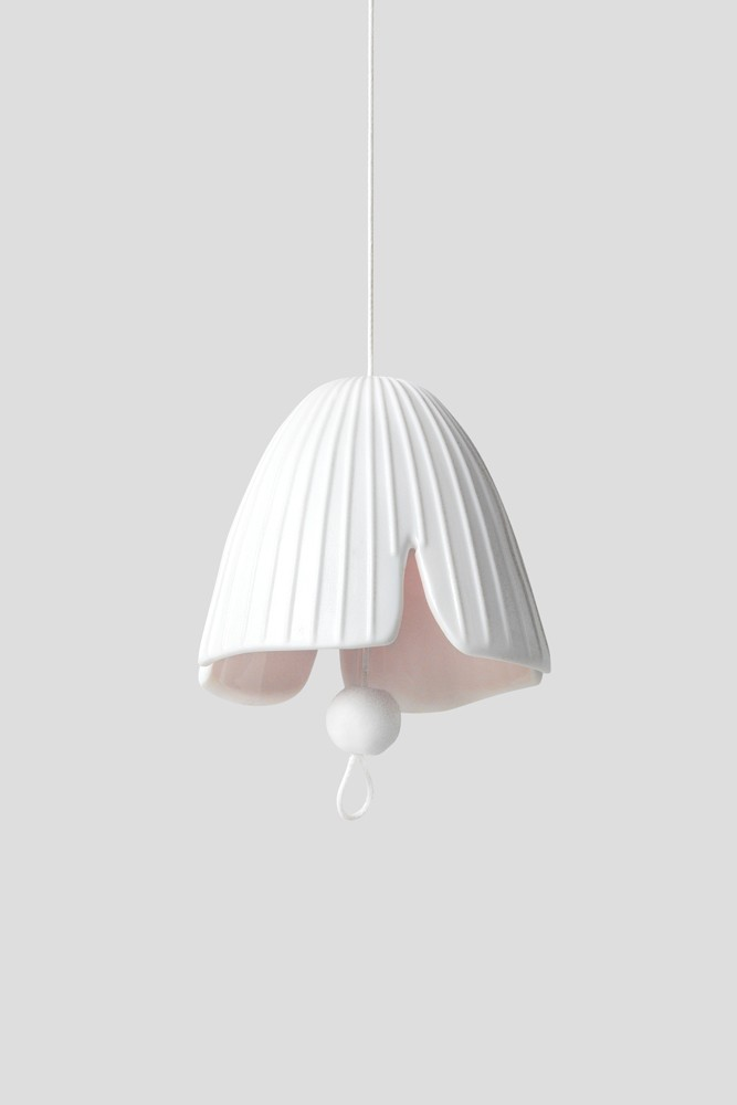 De porseleinen bloemhanger van Räder met zachte roze gloed aan de binnenzijde is een uniek decorati..
