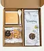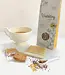Een compleet theepakket met biologische bloementhee, theefilters, een porseleinen lepeltje en heerlijke koekjes van de Koekfabriek. De koekjes worden met de hand gebakken door heel bijzondere bakkers, mensen met afstand tot de arbeidsmarkt.