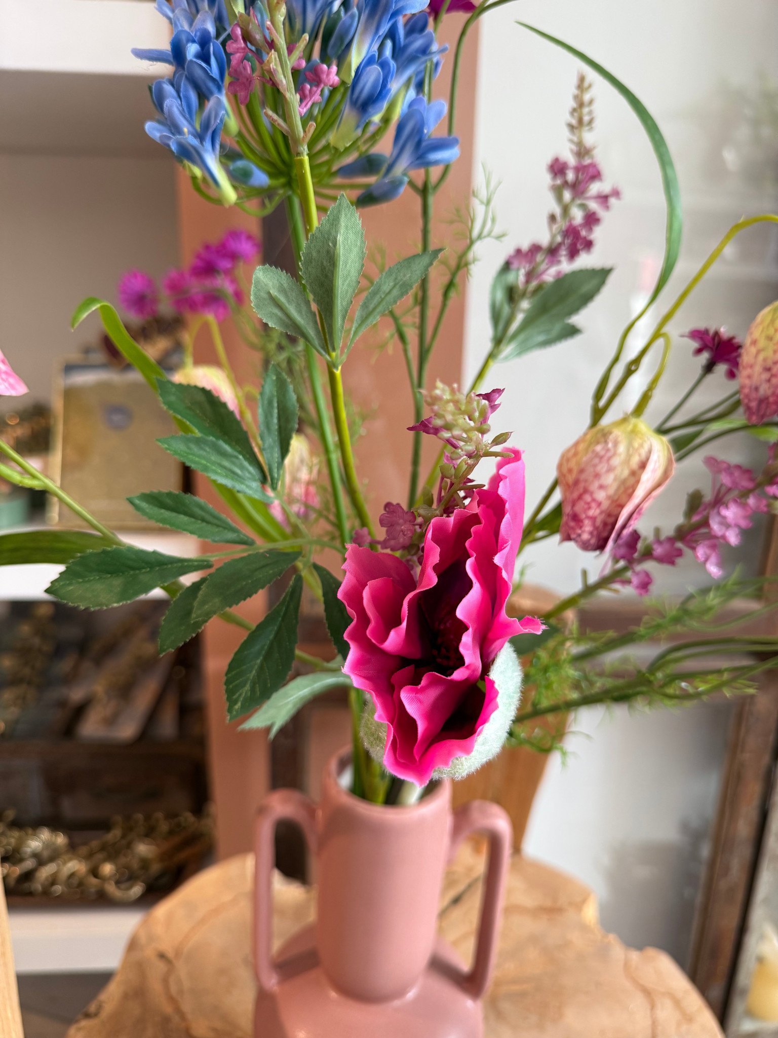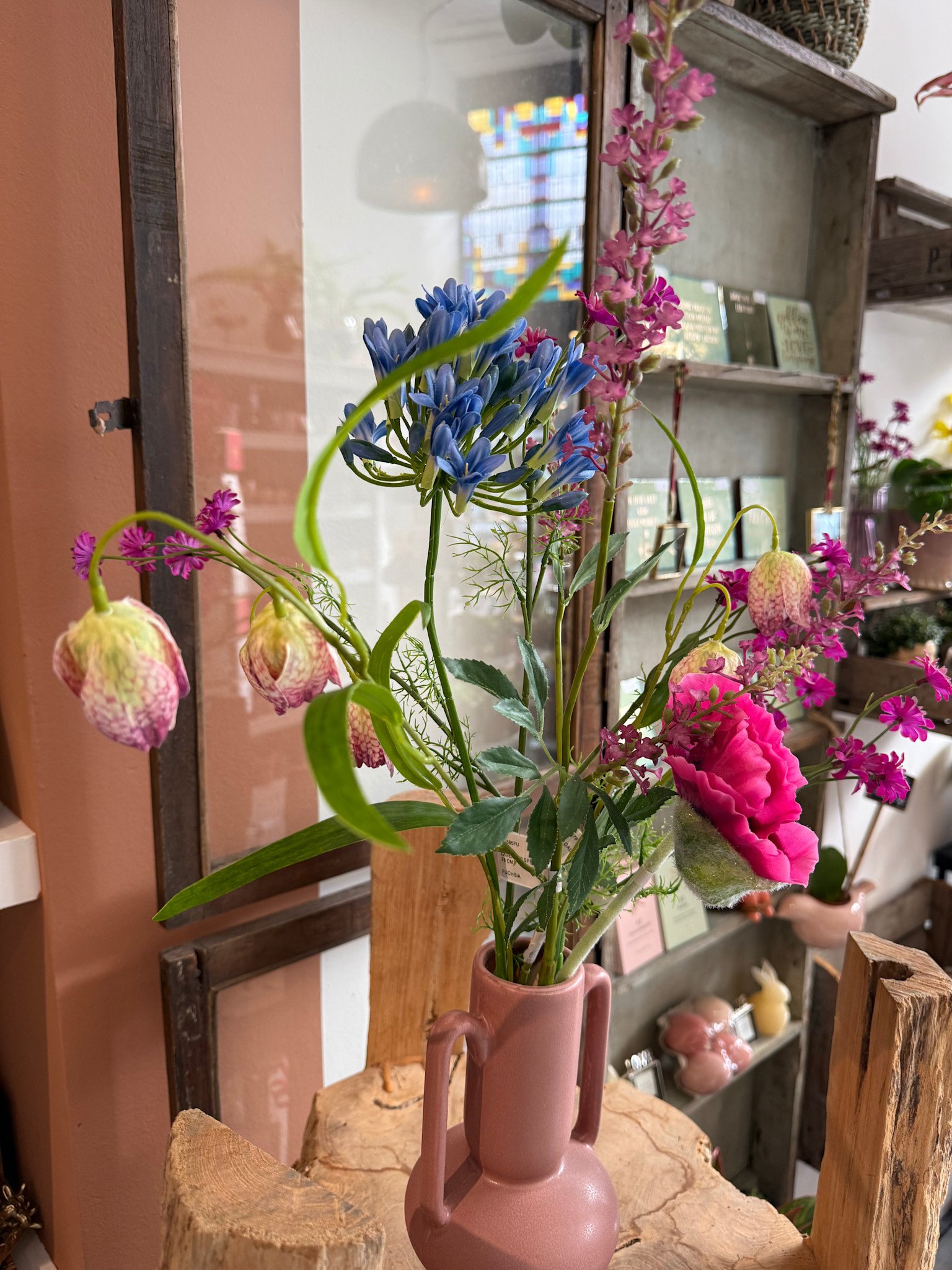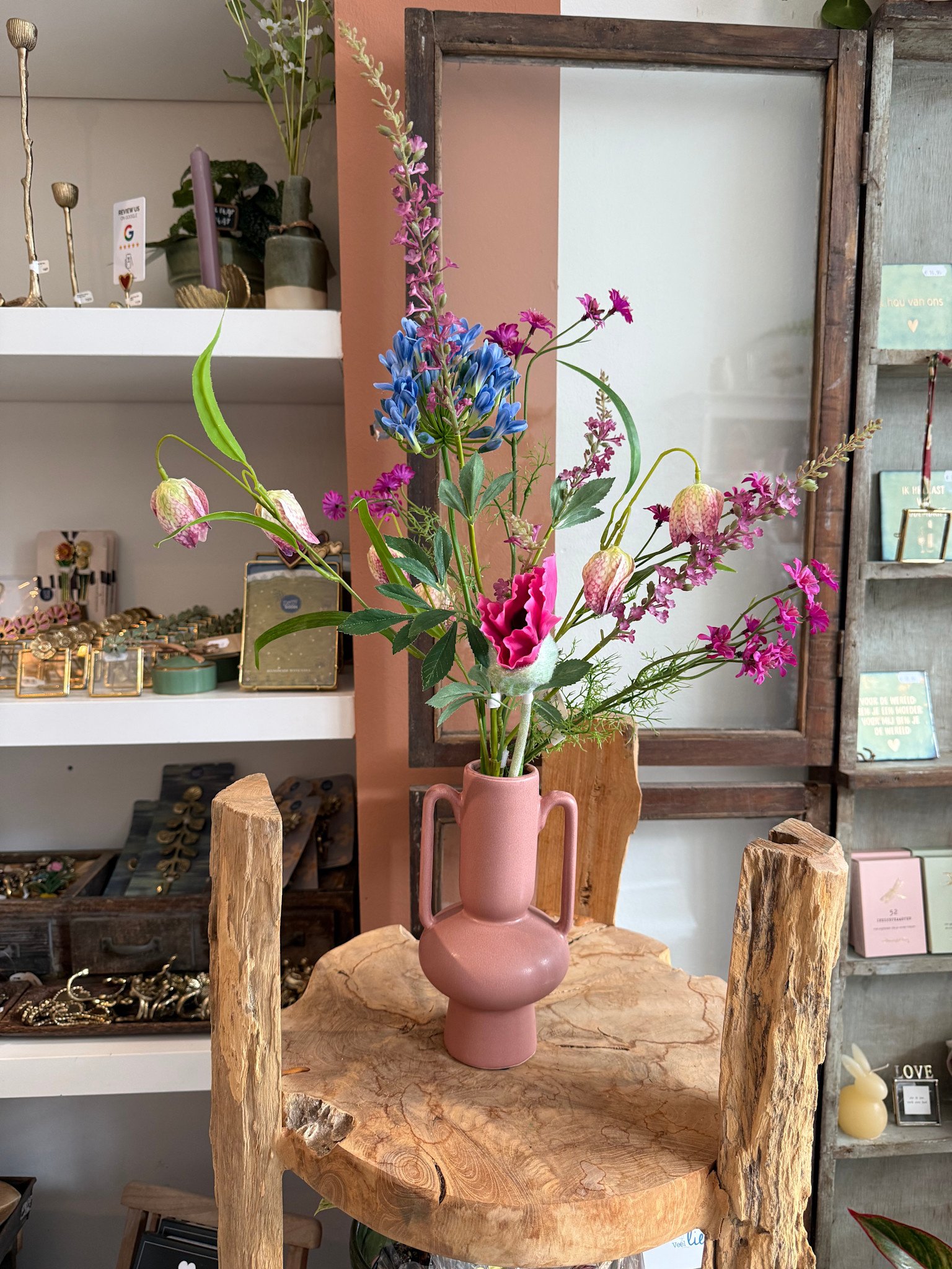 Haal de lente in huis met deze leuke roze vaas gevuld met kleurrijke, lente bloemen! Zo ben je in 1 x klaar om dat ene plekje in huis wat op te vrolijken!
