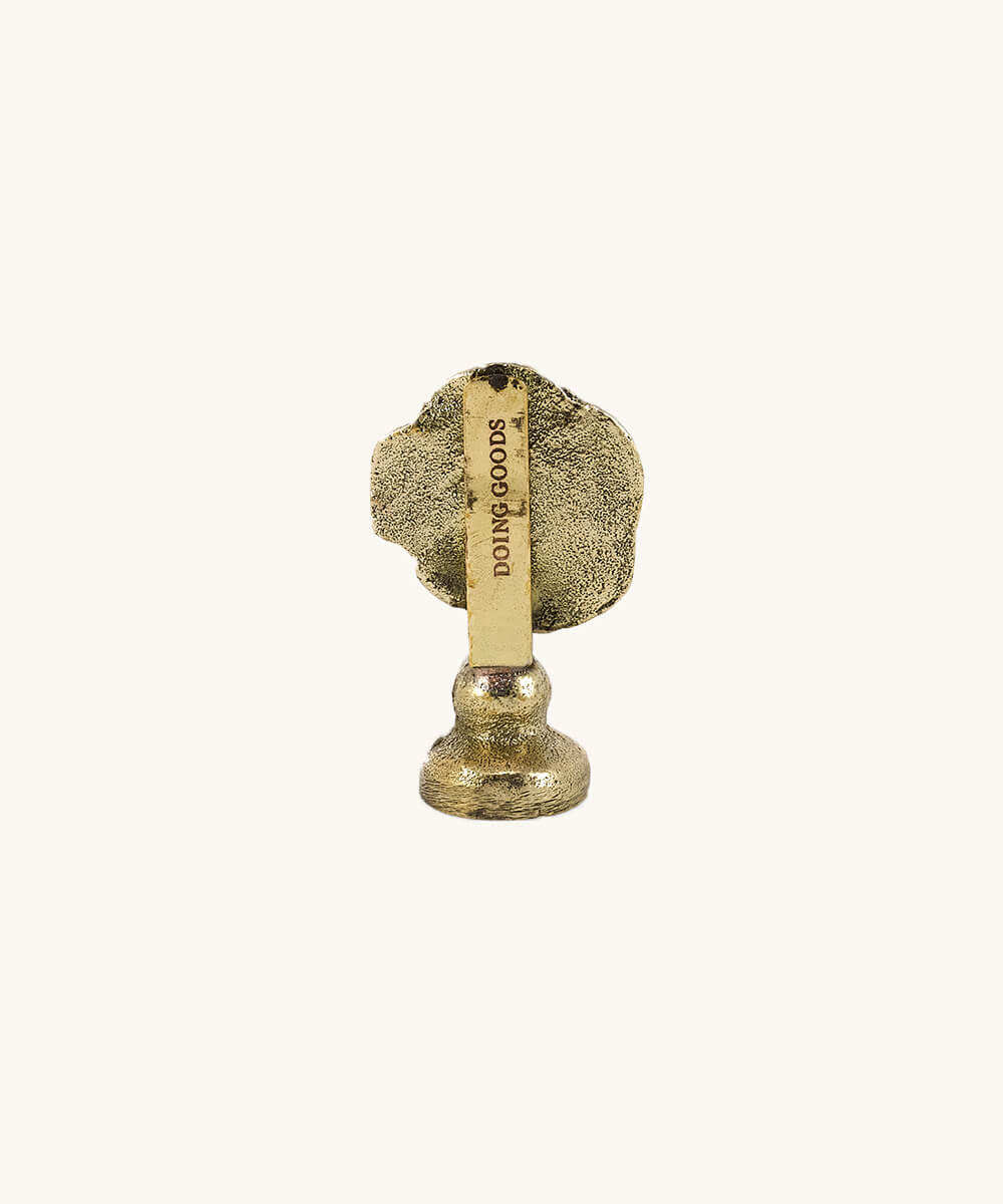 Dit verfijnde accessoire combineert een glanzende gouden basis met een delicate paarse bloem, een echte decoratieve eyecatcher!