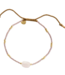 Dit verstelbare katoenen armbandje is handgemaakt met glaskralen en een Rozenkwarts edelsteen. Deze steen staat voor harmonie, vriendelijkheid en liefde. Lees meer..