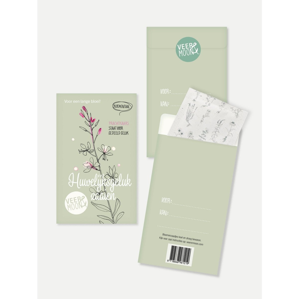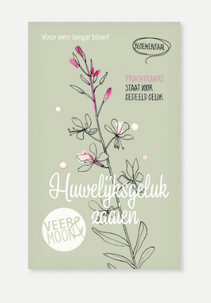 Het zadenzakje Huwelijksgeluk van Veer & Moon is een liefdevol en symbolisch cadeau voor een bruidspaar – of voor jezelf als je gaat trouwen. Het bevat zaden van de prachtkaars, een bloem die staat voor gedeeld geluk en die bekendstaat om haar lange bloei. Op de achterzijde is ruimte om de naam van de ontvanger en van jezelf te schrijven, zodat je het cadeautje een persoonlijk tintje geeft. Perfect om te geven, te versturen of zelfs als attentie bij een huwelijksdiner.