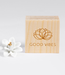 Een houten doosje van Räder met daarin een kleine porseleinen lotusbloem. Voorop het doosje staat de tekst 'Good vibes'. Lees meer..